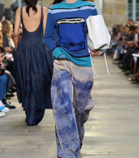 À Paris, Milan, Londres ou New York, les podiums se sont littéralement teintés de bleu. Doux chez Gucci, cobalt en version combinaison chez Meryll Rogge, aigue-marine seventies chez Burberry, ultra-vibrant chez Fendi. Une même couleur, déclinée à l’infini, toujours inspirante, omniprésente.