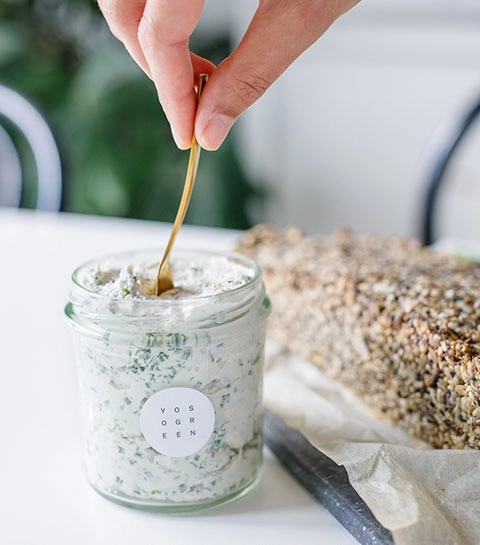 Notre fromage frais vegan ร l’ail et aux fines herbes