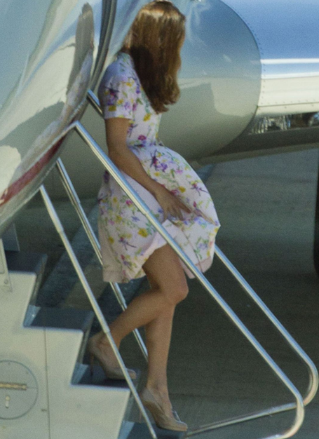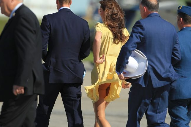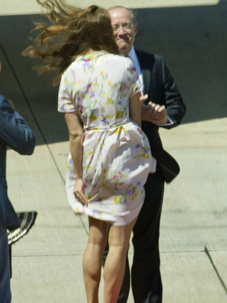 Kate Middleton moet de weergoden in een vorig leven onvergeeflijk beledigd hebben. De royal viel al vaak ten prooi aan genadeloze windvlagen, die niets van haar koninklijke billen aan de verbeelding overlieten. Al lijken de turbines van haar privรฉjet er ook voor iets tussen te zitten. kleine tip aan de toekomstige vorstin: draag een broek op het vliegveld!