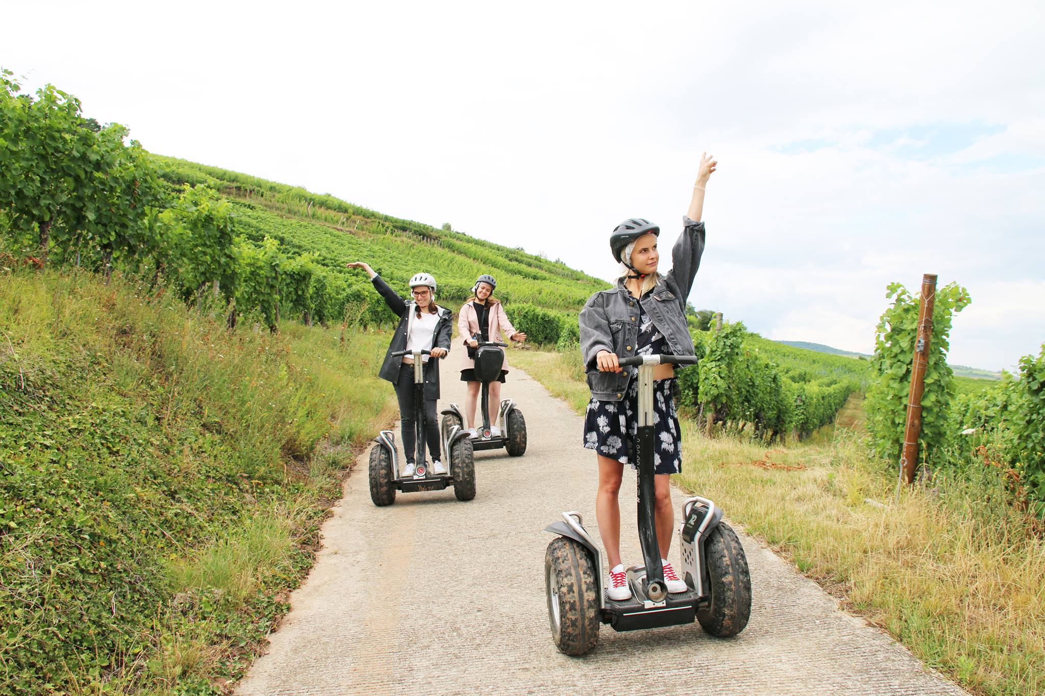 Veruit รฉรฉn van de meest vermakelijkste activiteiten van de Elzas!ย Met segways scheuren door de wijngaarden van Orschwihr. “Scheuren” is misschien een beetje overbodig, een segway kan maximum 12km/uur, maar goed. Wijngaarden kunnen behoorlijk bumpy zijn en de kunst zit ‘m erin om je gewicht zo goed mogelijk te verdelen om het toestel in balans te houden.
