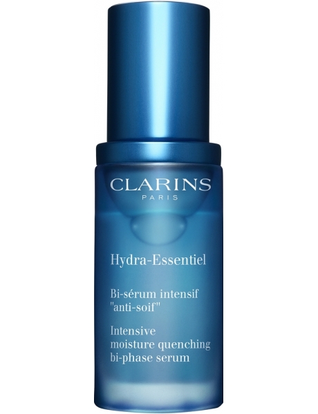 Om onze huid te redden testten we: het Bi-sรฉrum intensif “anti-soif” & de Gel sorbet dรฉsaltรฉrant uit het assortiment Hydra-Essentiel van Clarins.