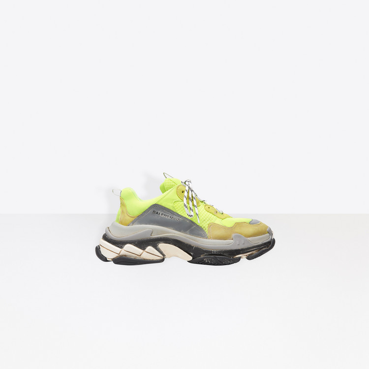 Balenciaga weet hoe het haar aanbod interessant moet houden. Na de heisa rond de “Ikea tas” komt het label opnieuw met een stijlunderdog op de proppen. De uniseks Triple S sneaker heeft een driedubbele zool, ziet eruit alsof hij jaren ergens achterin de garage heeft zitten wegrotten, is beschikbaar in vier verschillende uitgaves รฉn kost je een bescheiden 795 dollar. Het ding is ontsproten aan het brein van creatief directeur รฉn Vetements oprichter Demna Gvasalia, niet toevallig dรฉ cultfiguur achter de hele “lelijke mode” beweging.