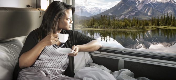 Wie droomt van het Noorden, moet bij de Rocky Mountaineer zijn, een trein die je de mooiste uithoeken van Canada laat zien. Op het menu staan vier verschillende routes langs zeven bergketens en je kan de reis combineren met avontuurlijke outdoor activiteiten en zelfs een cruise naar Alaska. Het is niet mogelijk te slapen aan boord, maar de Rocky Mountaineer werkt samen met tal van luxueuze hotels waar je na een dag treinen even de benen kan strekken, shoppen of de lokale spa verkennen.