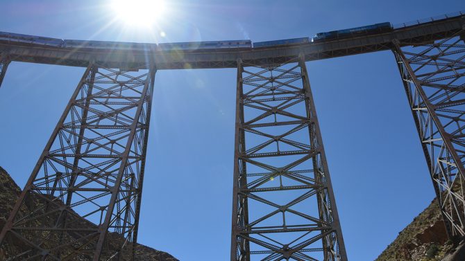 De โtrein naar de wolkenโ gaat over รฉรฉn van de hoogste spoorwegen ter wereld en brengt je tijdens een 16 uur durende reis van het Argentijnse Salta naar Chilli. Aan het einde van de rit sta je een dikke 4000 meter boven de zeespiegel. Onderweg kom je tabaksplantages en afgelegen ranches tegen, en in het totaalย passeer je over 29 bruggen en 13 viaducten รฉn duik je 21 tunnels in: hang vooral niรฉt uit het raam wanneer het gevaarte over het legendarische Polvorilla viaduct raast. De vrolijke multicolor trein werd enkele jaren geleden volledig gerenoveerd en heeft tegenwoordig comfortabele en moderne suites en badkamers, aan boord bevindt zich zelfs een kliniek waar passagiers met hoogteziekte eventjes wat verse lucht kunnen gaan happenโฆ