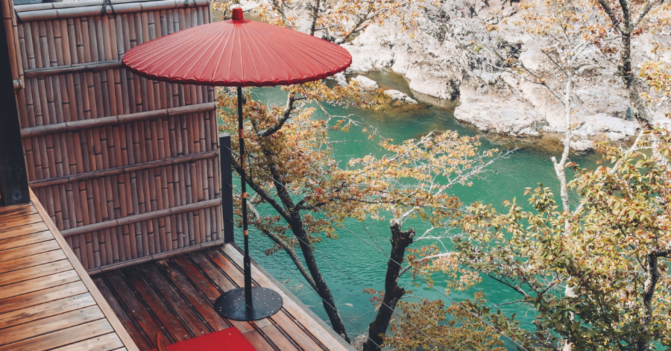 Om dit weg-van-de-wereldhotel te bereiken, wacht je een heuse expeditie als onderdeel van de โexperienceโ. Trek eerst richting Arashiyama, de rustieke wijk in het westen van de stad en neem vervolgens de boot naar de overkant van de jadegroene Hozu-rivier. Het hotel op de heuvelflank telt vijfentwintig kamers, verspreid over een tiental eeuwenoude huisjes. Het nostalgische interieur met vintage blauwe muren en warme accenten van hout en bamboe brengt je automatisch in relaxmodus. Het kabbelende water doet de rest…
