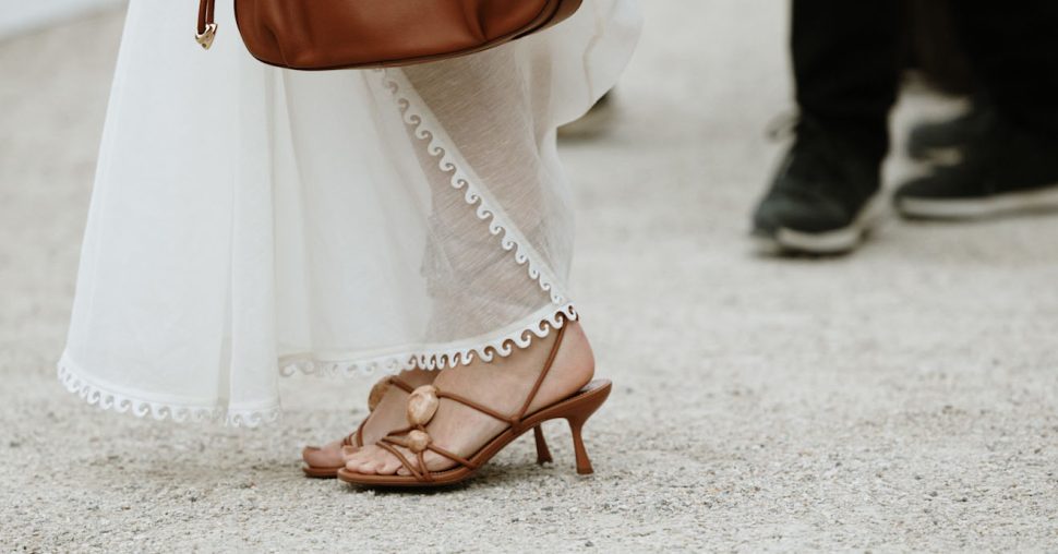 Op TikTok duiken combinaties op van babyblauw met zilver, framboosrood naast nude of een subtiel gouden randje op een glossy basis. Het is een pedicure die het hele jaar door werkt, zowel in peep toe sandalen als mesh ballerina’s.