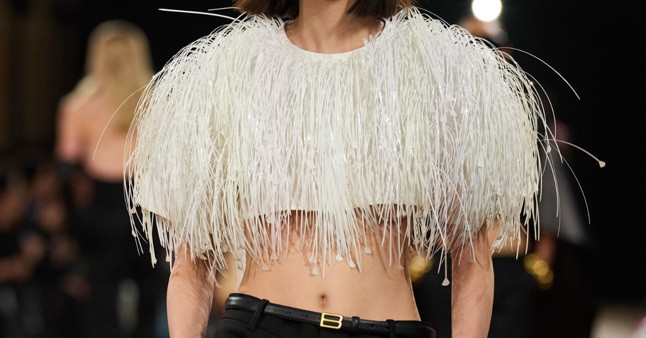 Franjes werden jarenlang vooral gebruikt als afwerking aan tassen, jassen of boho-items. In de recente modeweken komen ze voor in leer, zijde, wol en metallic garens. Ze bewegen mee met elke stap en maken outfits levendiger zonder schreeuwerig te zijn.